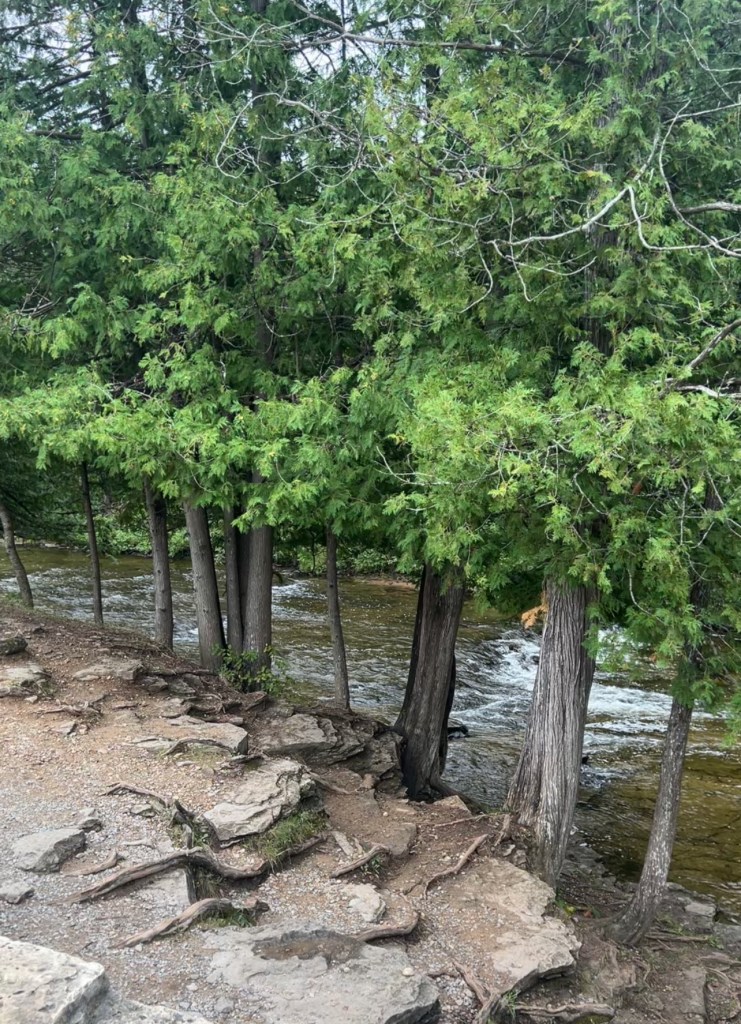 The cascading falls seem to go on forever separated by tiny whirlpools to swim in and wade. At the head of the falls, near the parking lot, there’s a picnic area to set up for the day. Or, if you’re more adventurous, there’s a trail that follows the river into the dense cedar forest that borders the park.